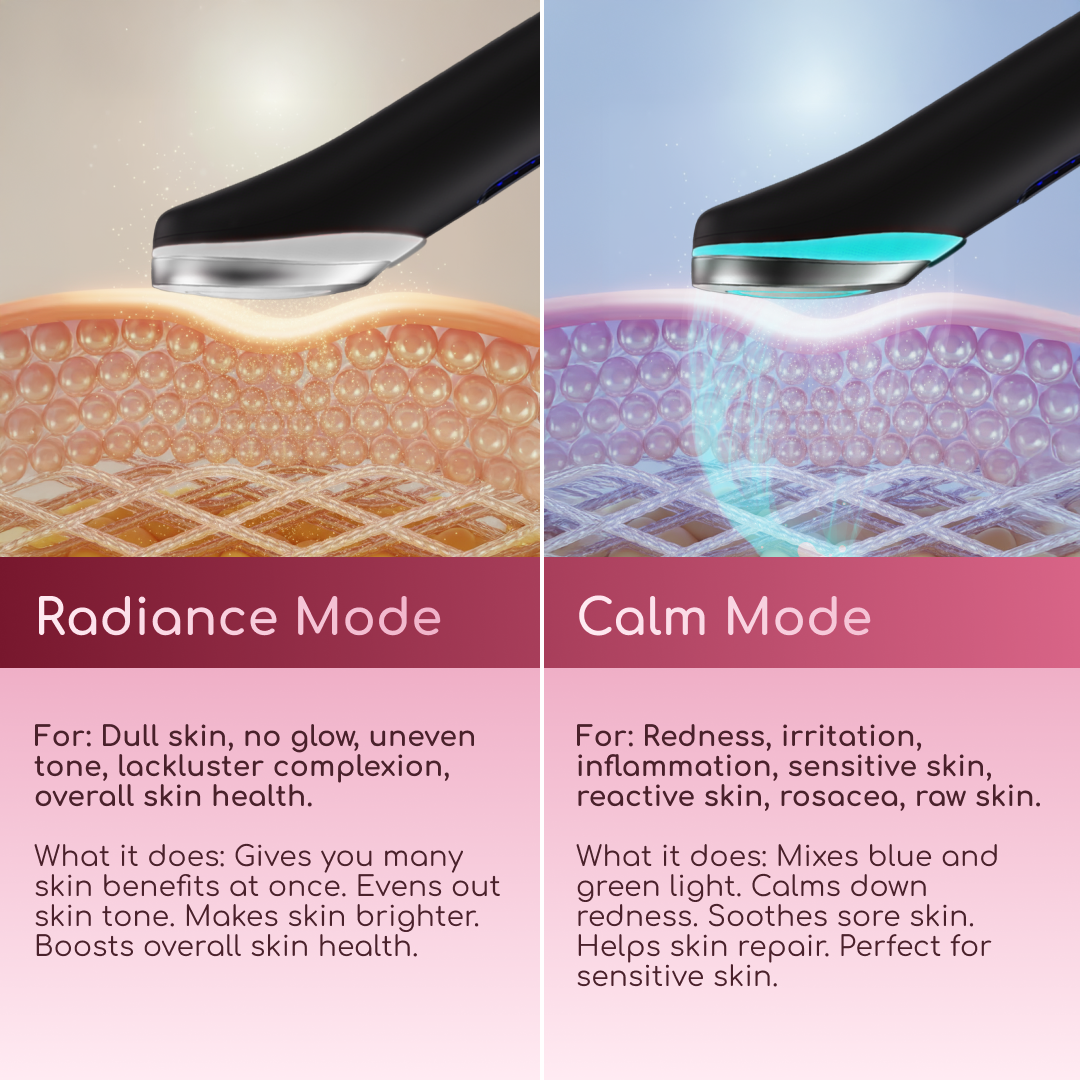 Calm Mode (Blue/Cyan) - Reduces redness, irritation, and inflammation